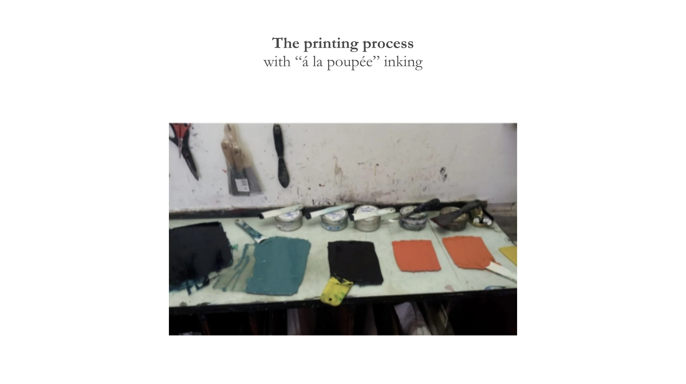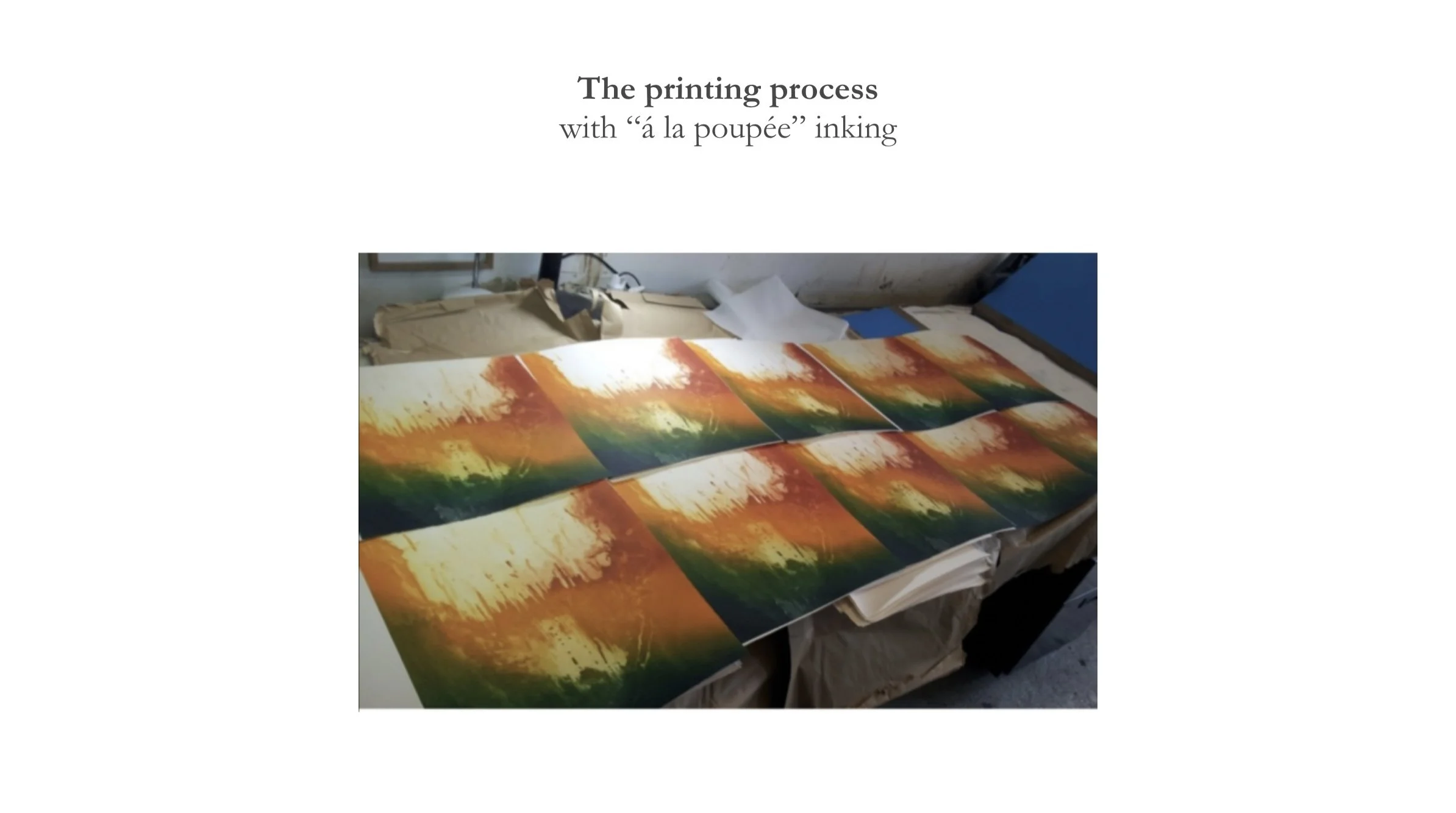The idea of intonation, borrowed from a musical context, assumes a visual dimension thanks to all the choices inherent in the printing : mixing the inks, looking for the right timbres and tonalities, as well as testing the extreme tactility of the wiping process. This creates a physical connection with the material itself, as a rhythm produces vibration sensed by the whole body.